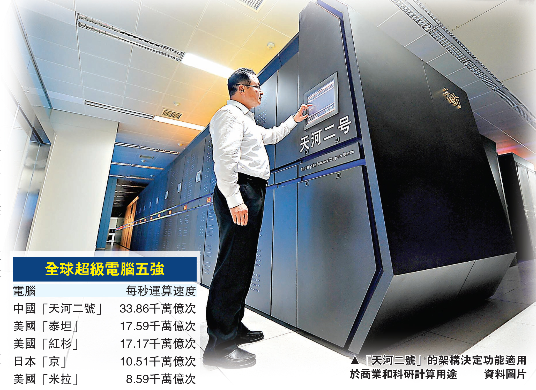 国家超级计算广州中心16日发表声明,否认利用世界上最快的超级电脑“天河二号”模拟核爆炸,强调“天河二号”採用的架构决定了其功能,主要适用于商业和科研计算用途。该声明补充说,美国实施与超级电脑有关出口限制将加速中国自主芯片产业化进程。【大公报记者官文清广州十七日电】