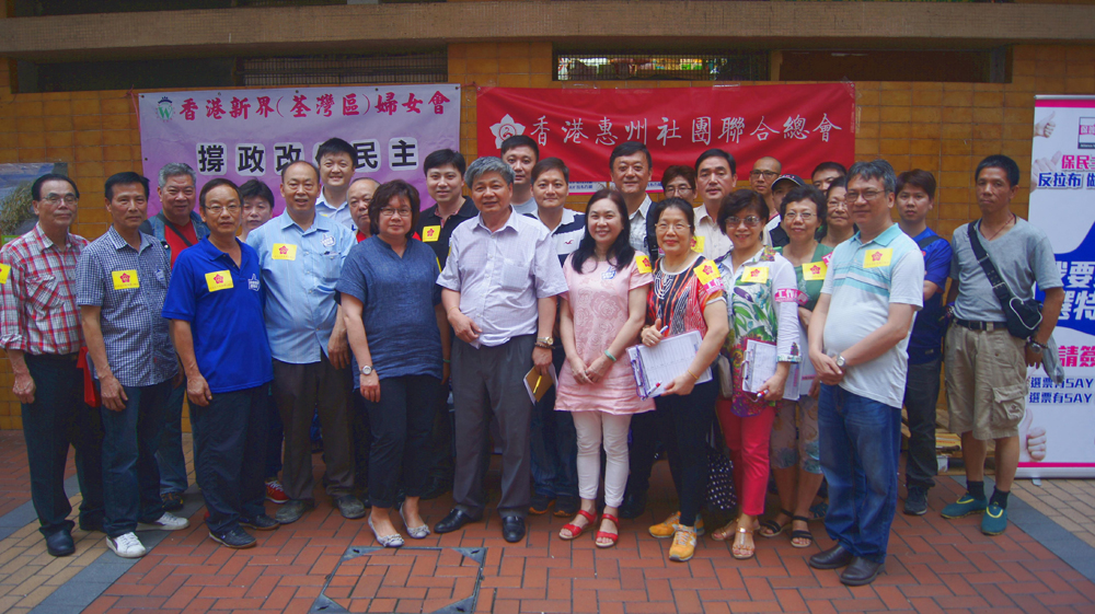 惠州社团常务副主席王观强号召多个惠州社团属会举行誓师大会,执行主席黄少康亦有到场打气,副主席关国伟、朱德荣、蔡立基、副秘书长黄木洋及荃湾妇女会主席李静红,以及数十名惠州社团属会会员在荃湾街坊的见证下,高喊“2017,一定要得”等支持政改方案的口号,表达支持国家履行对香港政制发展的承诺。与此同时,为响应“保普选 反暴力”大联盟的签名行动,惠州社团于全港各区设立多个街站,呼吁市民踊跃签名撑政改。
