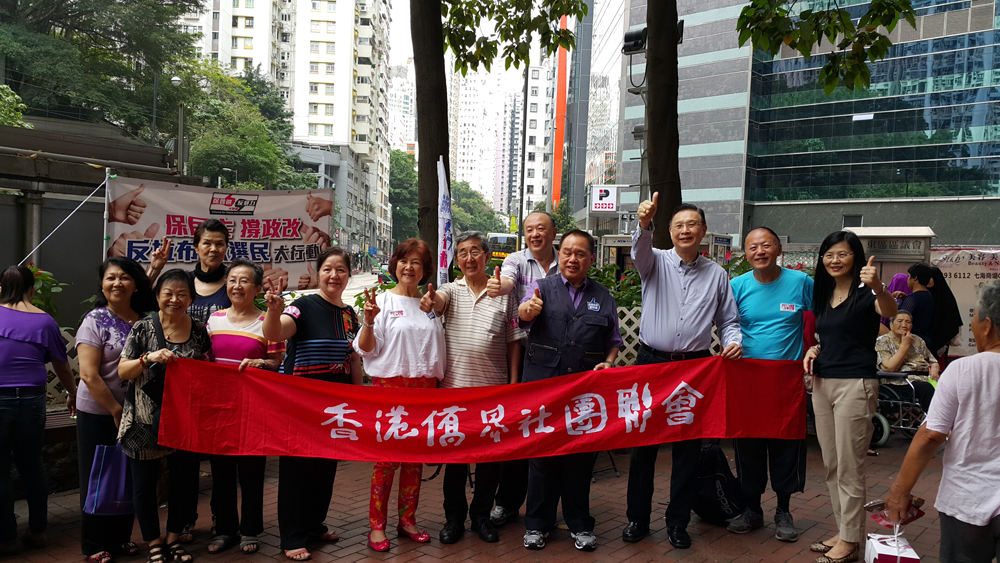 由“保普选反暴力大联盟”发动的“保民主撑政改反拉布做选民”大型签名行动启动后,香港侨界社团联会在港九、新界各地共设置六个街站,包括:铜锣湾中央图书馆正门附近、北角英皇道七海商业中心前、北角英皇道银辉中心地下、九龙佐敦道裕华国货公司门口、新界大埔乡事会街大埔街市、荃湾港铁A出口、B出口等。连日来该会每天各有30人参与签名街站当义工。各街站每天都收回近千人签名,支持通过政改方案,让普选能够顺利落实。