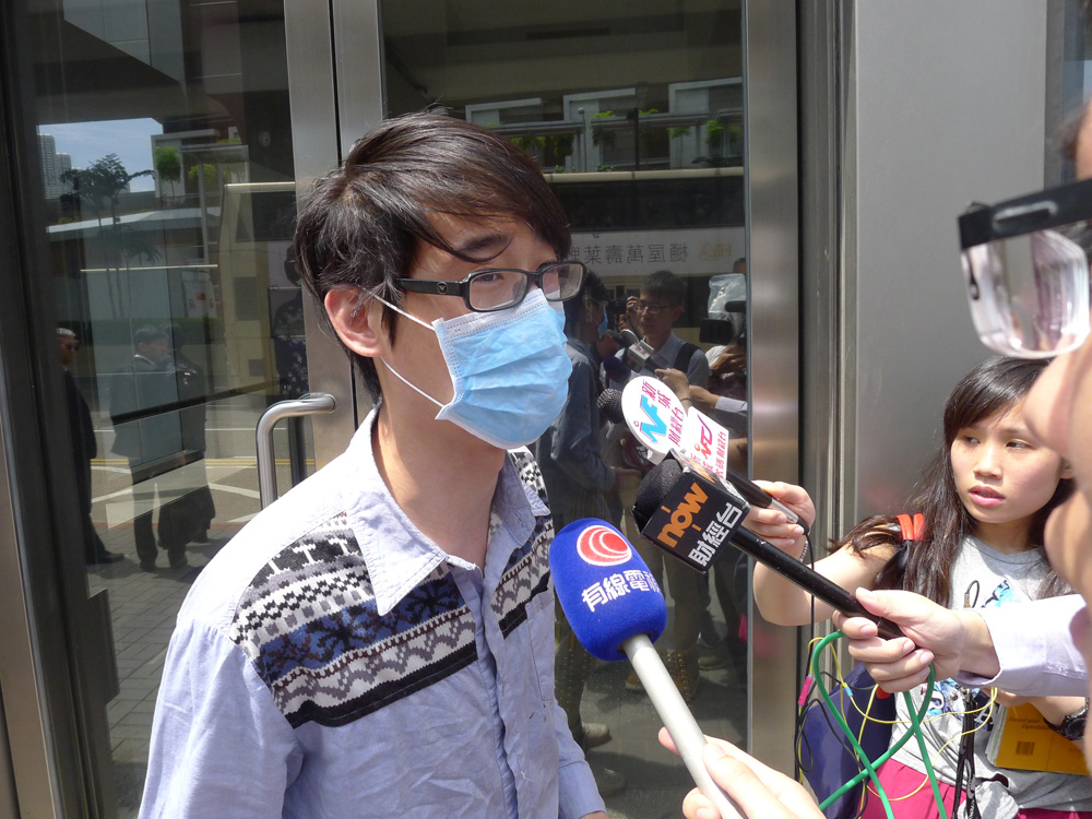 图:佔旺跟车工人梁志恆去年佔旺期间骂警掷铁马,昨被判“在公众地方作出扰乱秩序的行为”罪名成立 本报记者叶汉亮摄