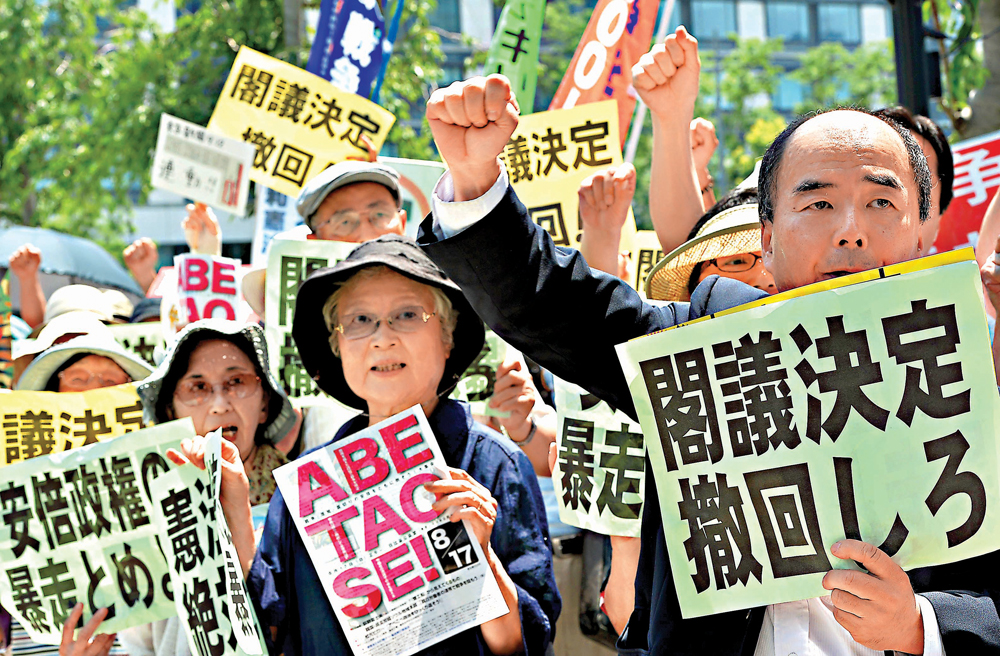 图:去年7月,日本民众在东京反对安倍修宪解禁集体自卫权 资料图片