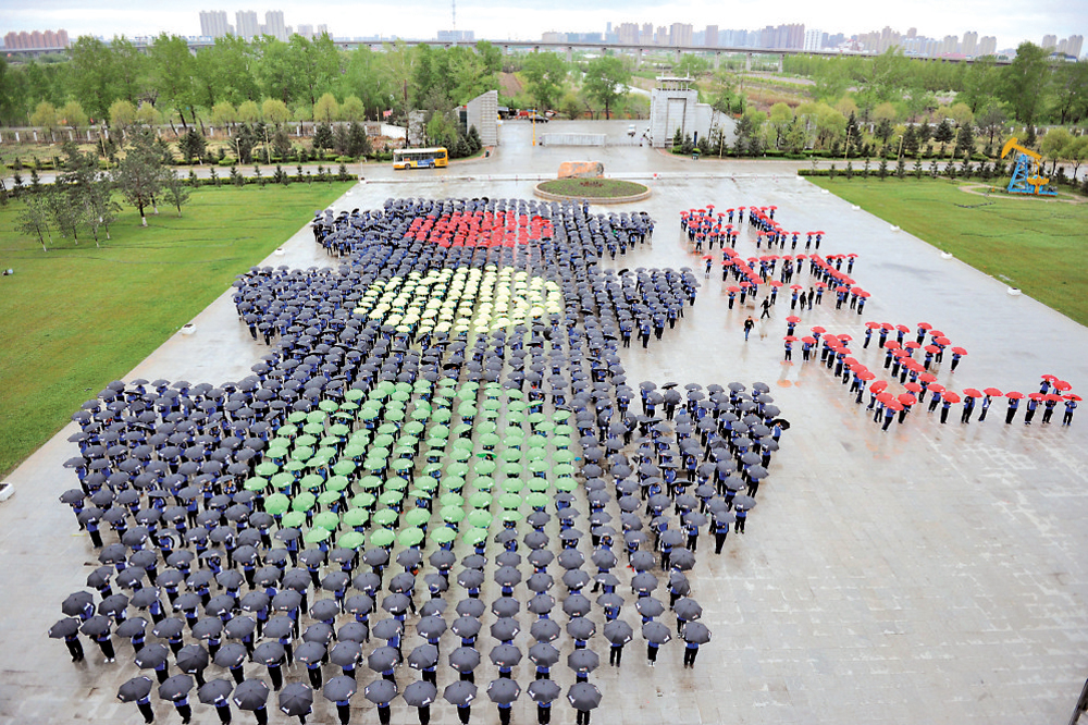 12日,在哈尔滨石油学院广场上,由一千四百七十名大学生志愿者创造了“世界最大人体‘红绿灯’警示标示”世界纪录。该活动目的是为了警示市民不要违反交通规则,文明过马路。 中新社