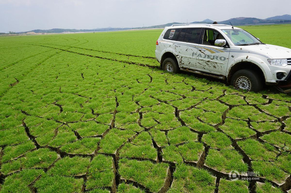 23日,由于连日来的乾旱,山东日照水库水域面积急剧减少,裸露出来的水库库底已经开始皲裂并长满野草,放眼望去绿油油一片宛如草原,不少越野爱好者将车开到水库裸露的地上纵情奔驰。 腾讯网