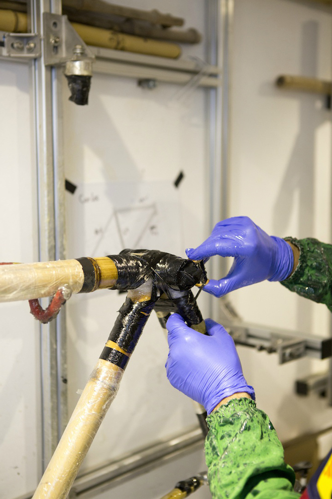 图:打磨好的竹子组装后还需进行“关节”加固 网络图片