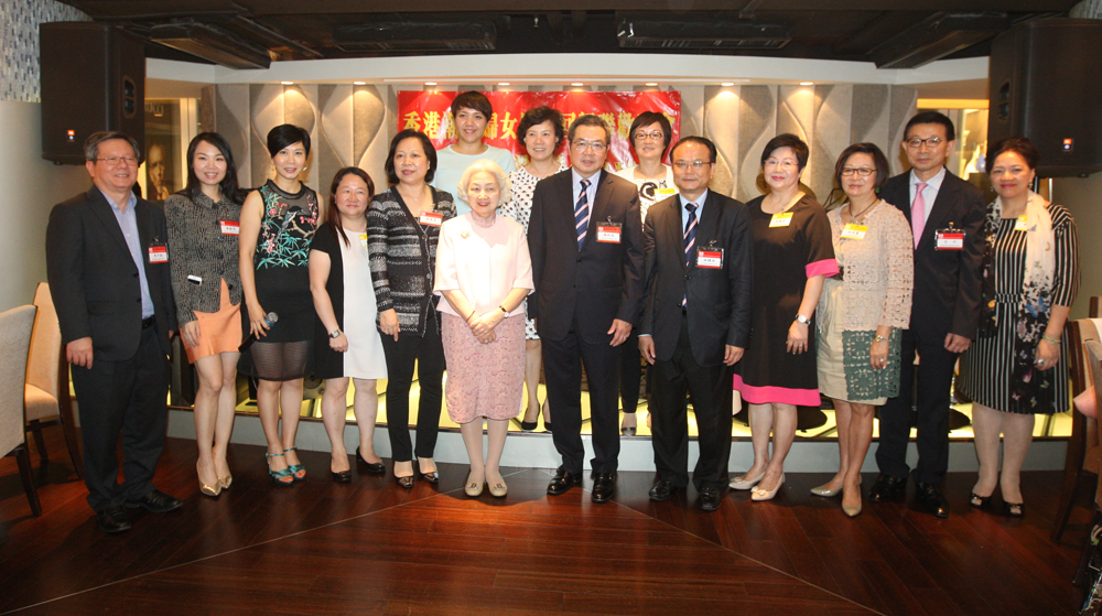 香港潮属社团总会妇女界庆祝香港回归十八周年联谊晚会,前晚假中环万邦行四楼举行,基本法委员会副主任梁爱诗应邀主礼。总会主席陈幼南,副主席马介钦,秘书长方平,妇委主任陈爱菁等出席晚会,与各属会妇女精英近六十人欢聚一堂,场面热闹。/大公报记者 冯 玥 实习记者 牛真谛