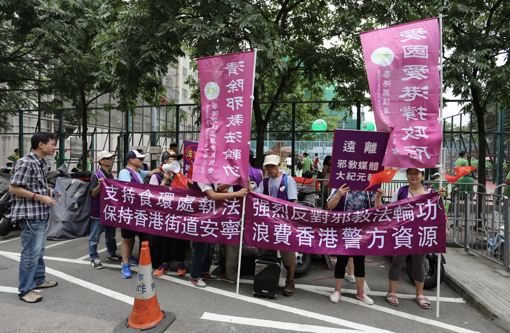 香港青年关爱协会等团体昨日约500人发起请愿及街站,支持特区政府依法施政,同时促请政府严正执法,制止法轮功长期扰乱香港社会和谐安定的行径,街站成员高叫“剷除邪教法轮功,全球公审李洪志”、“台湾邪教法轮功滚出香港”等口号,又于各街站举起“邪教法轮功製造谎言,残害生命”、“要求香港政府剷除邪教法轮功”等横幅。各个反法轮功邪教的团体,于街上广播,提醒市民法轮邪教宣扬有病不治、教主崇拜、精神控制等,导致大量患病人士延误就医、出现严重併发症,甚至引致死亡。反法轮功团体提醒香港市民,不要被其误导,误信邪教。