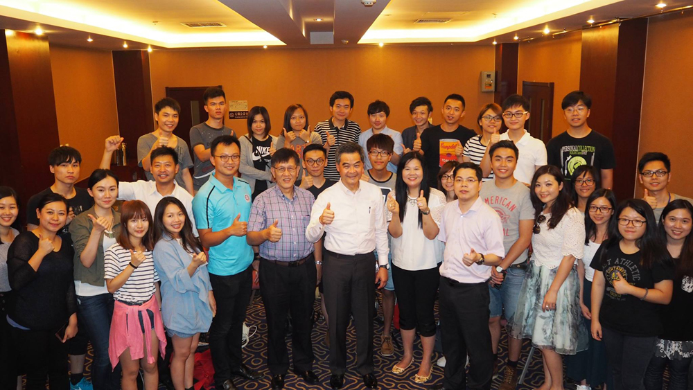 图:梁振英于北京探访当地香港学生