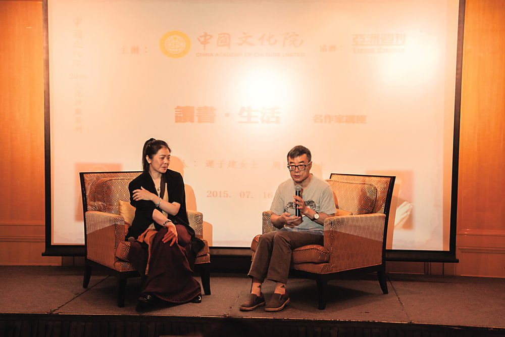 图:周国平(右)与迟子建分享读书心得