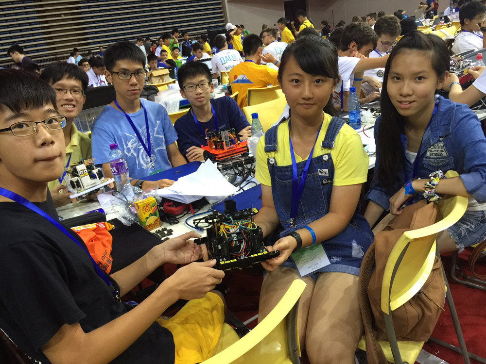 除了常规足球赛事外,RoboCup也设有其他比赛项目。Rescure maze(拯救迷宫)是RoboCup青少年组比赛项目之一,要求参赛机械人于一个立体迷宫中,寻找代表遇难者的热能目标,但同时需要极力迴避障碍物以及迷宫墙壁,对机械人的识别能力要求甚高。来自保良局百周年李兆忠纪念中学的八人团队是本届RoboCup唯一参赛的香港团队,这些最大不过高三、最小初二的“后生仔”通过半年时间设计出能够躲避障碍、遇热实施援救的机器人,夺得港区选拔赛冠军,以初生牛犊之心站在国际机器人大赛舞台。“今天前两场机器车都顺利通过赛道,我们很有信心。”团队成员黄薇告诉记者。