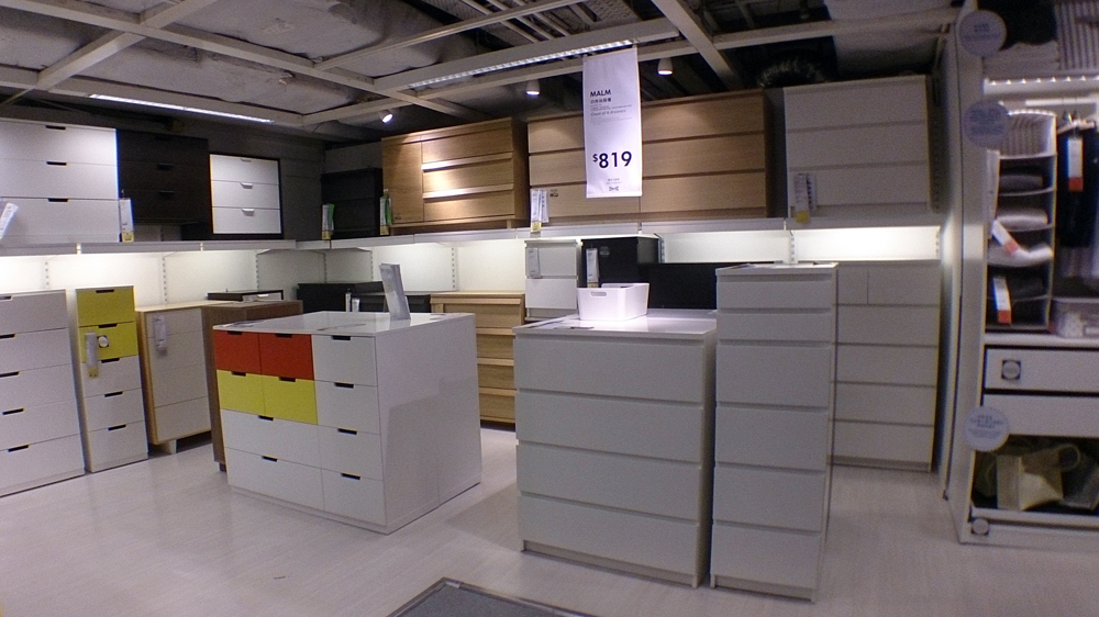 图:《大公报》记者昨日到宜家分店视察,未有太多顾客购买该系列抽屉柜(图右) 大公报记者黄洋港摄