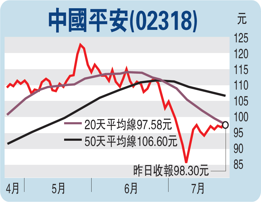 平保(02318)拾级而上,昨日一度升至九十九元四角五仙,收市报九十八元三角,上升一元七角,互联网金融业务分拆上市惹人憧憬,平保收復百元失地。