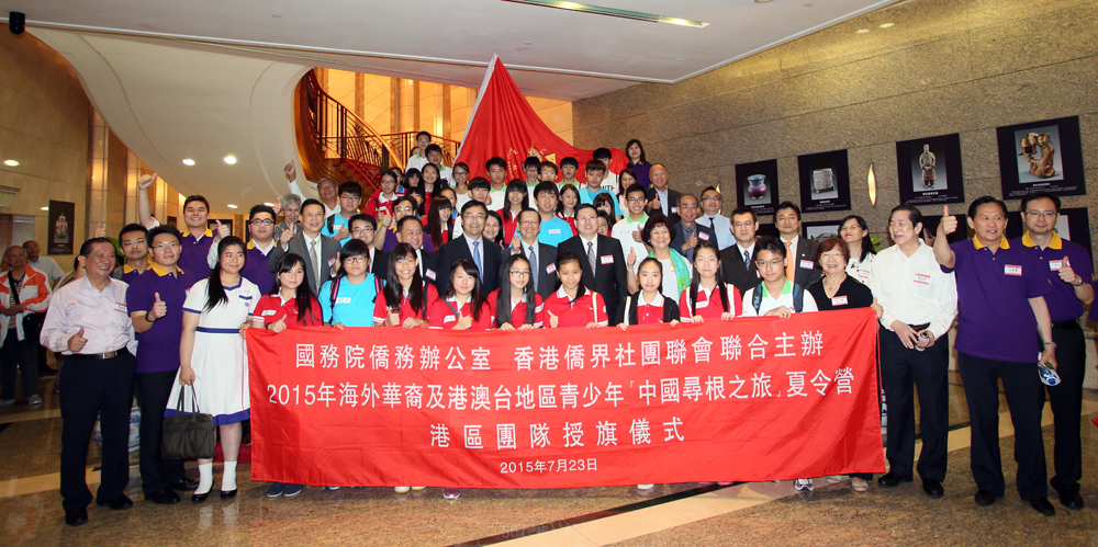 由国务院侨务办公室和香港侨界社团联会联合主办的2015年“中国寻根之旅”香港区夏令营昨日在外交部驻港特派员公署举行授旗仪式,本港50多名中学生将于八月一至九日赴北京,与2400多名海外青少年会合,游览祖国名胜,认识民族歷史文化,了解中国国情。 大公报记者 张艺博