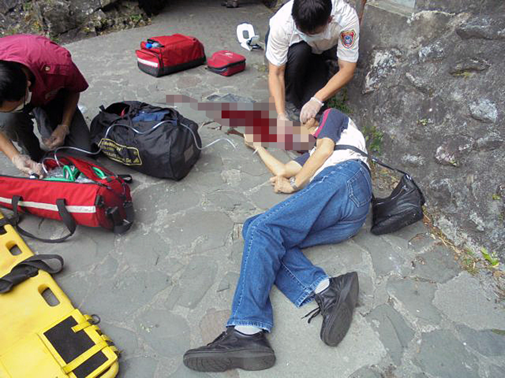 图:一名带?香港旅行团游览太鲁阁的导游遭落石砸中头部,紧急送医救治 中央社