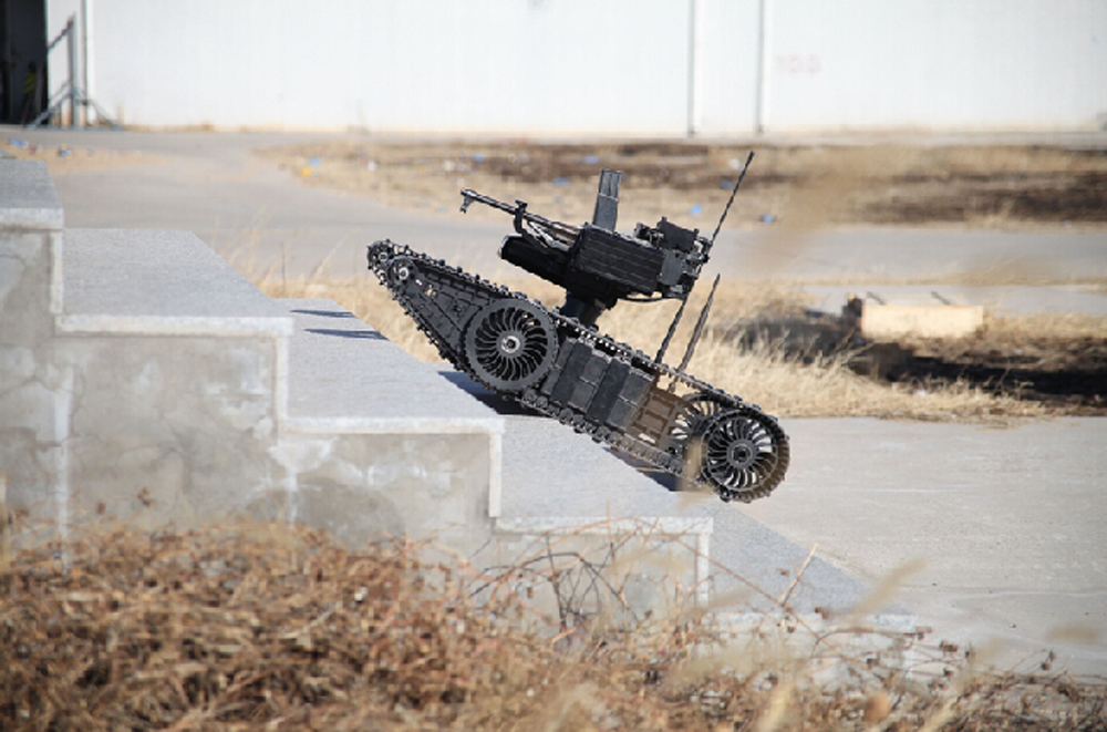 底盘上的通用型枪塔体积不大,重心很低,可搭载轻型冲锋枪或近战武器,是一款为城市或小范围山地作战设计的机器人,典型的应用场景应是伴随步兵或其他地面力量共同前进,在人员无法到达的狭小空间,在有毒、有爆炸物等危险环境中完成作战任务。可以是小分队的先锋队员,也可以承担不易到达的环境中的侦察员,为战斗任务同时提供信息保障和打击能力。