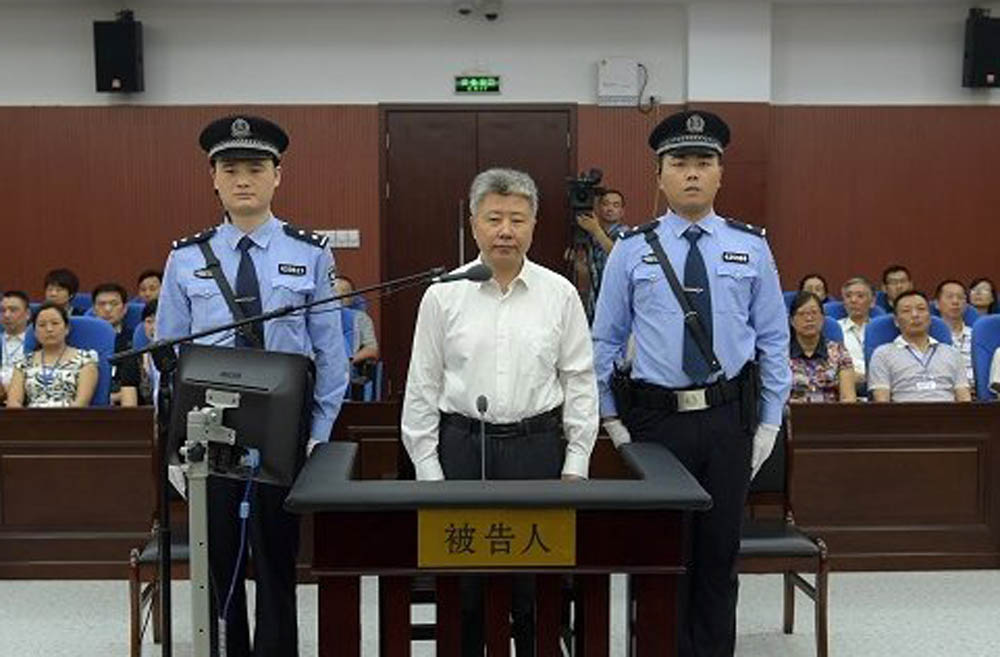图:7月20日,王永春(中)在湖北省襄阳市中级人民法院受审\资料图片