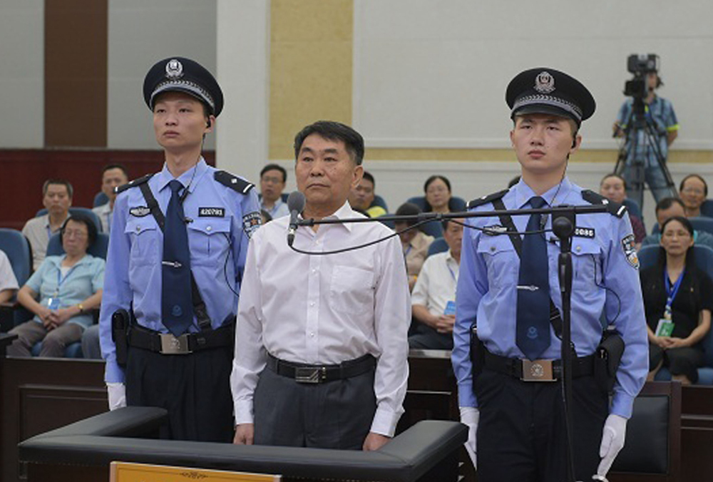 图:7月22日,郭永祥(中)在湖北省宜昌市中级法院受审理\资料图片