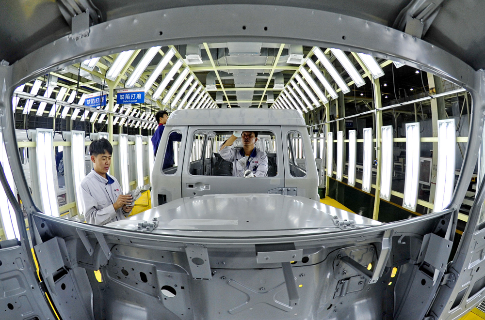 图:工人在北汽集团的华北(黄骅)汽车产业基地总装分厂生产线上工作\新华社