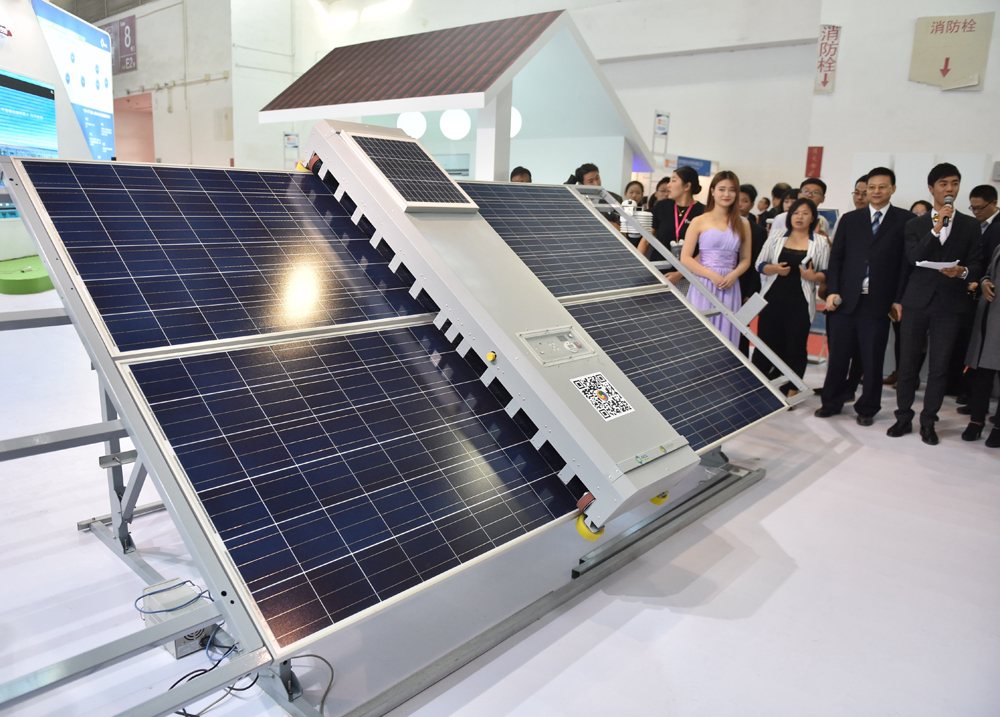 光伏大会暨展览会在北京举行。此次大会吸引了包括光伏组件、材料及零部件、开发商在内的光伏全产业链企业前来参展。图为一家企业在推介其製造的光伏智能运维机器人。 新华社