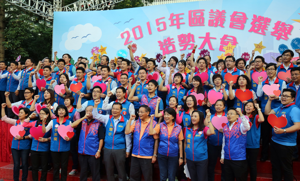 图:民建联日前举行区选造势大会,今次共有九位成员出选油尖旺区议会,其中佐敦西选区的陈少棠已自动连任