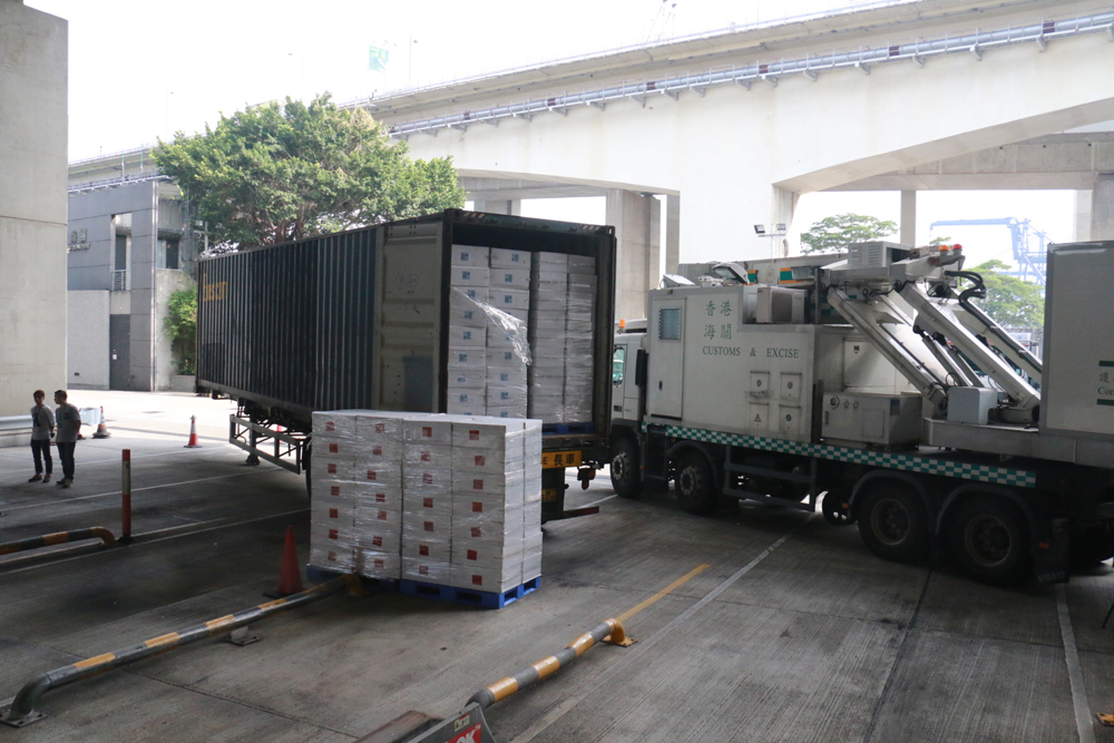 至前日海关人员将该个可疑货柜运往葵涌海关大楼验货场进行X光检查,由于影像显示柜内的货物排列整齐及一致,与惯常载运家庭用品的显示影像不同,于是开柜作一步查验,结果揭发该批私烟,其数量及价值属海关近两年半来破获的水路最大宗。