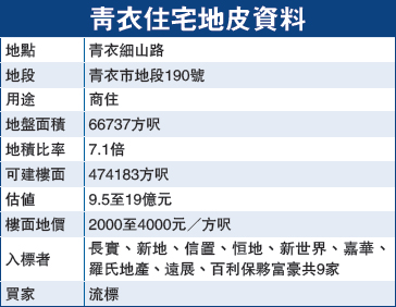 图:流标的青衣住宅地皮,因背后有大幅山坡地,需要发展商负起对山坡土质勘察、维修及保养等工程,故发展商难以较高地价竞投\大公报记者林志光摄