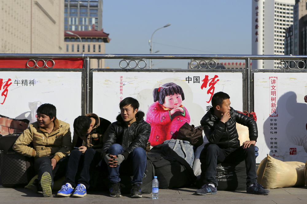 图:“十三五”时期是全面建成小康社会决胜阶段。图为北京火车站前等车的乘客\中新社