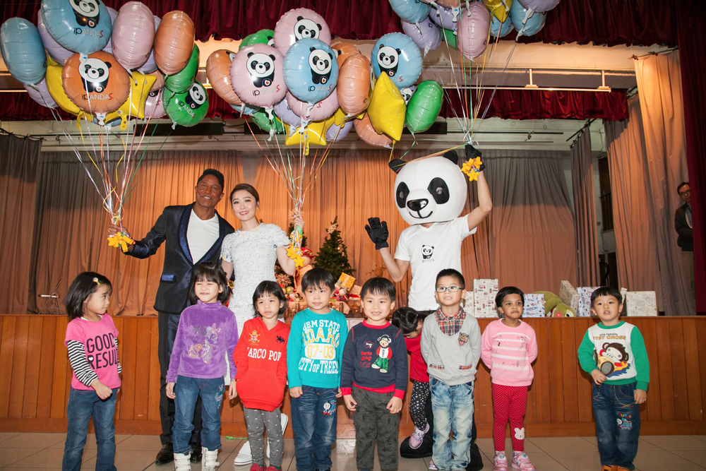 图:Jermaine Jackson(后排左起)及Niki探访小朋友