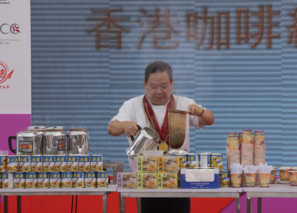【大公报讯】实习记者曾美玲、王健琦报道:新年首天,香港咖啡红茶协会邀请2010年度国际金茶王大赛冠军罗德师傅来到工展会现场,为市民示范沖泡港式鸳鸯奶茶,不少市民赞好。