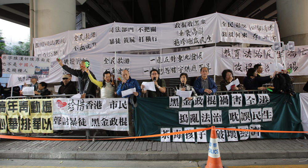 有市民对游行队伍表示不满。约20名“珍惜群组”成员在湾仔消防局外一段行人路聚集,当游行队伍行经鹅颈桥天桥时,一众成员随即高叫口号,批评反对派“政棍”煽动青少年“搞佔中”、“搞港独”,在议会内则进行“拉布”,影响施政,部分反对派议员更牵涉“黑金”事件。游行亦令警方需要进行交通管制措施,有电车乘客不满行程受阻,在车上指骂游行人士,批评他们不知所谓、搞乱香港。