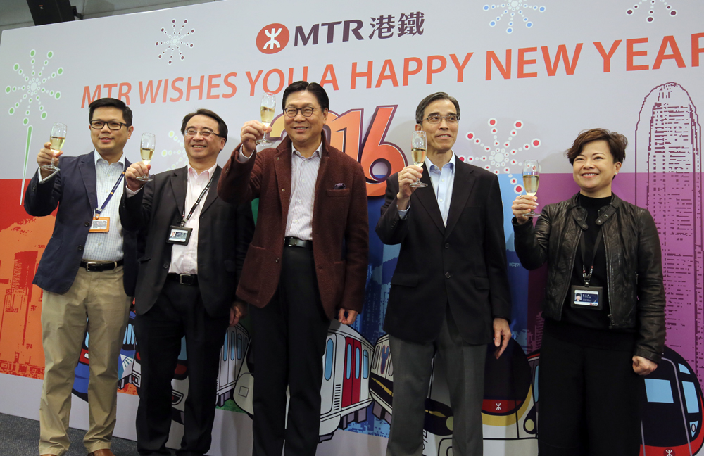 港铁昨晚通宵行驶,马时亨从香港站出发乘坐东涌线,凌晨约一时三十分到达青衣站,较原定时间迟到约30分钟。他先到青衣站客务中心问候通宵工作职员,连称新年快乐及“辛苦晒”,然后到青衣站车务控制中心,与各铁路线主管握手及派发曲奇饼。随行高层有港铁车务总监金泽培、车务营运副总监刘天成、公司事务总监苏家碧等。