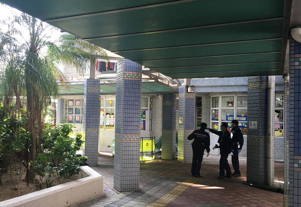 图:警员在元州?妇人堕楼现场调查\网上图片