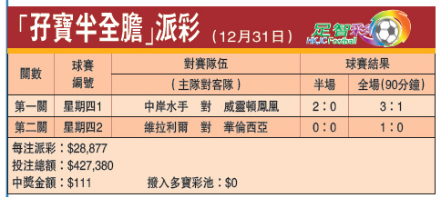 “孖宝半全胆”派彩