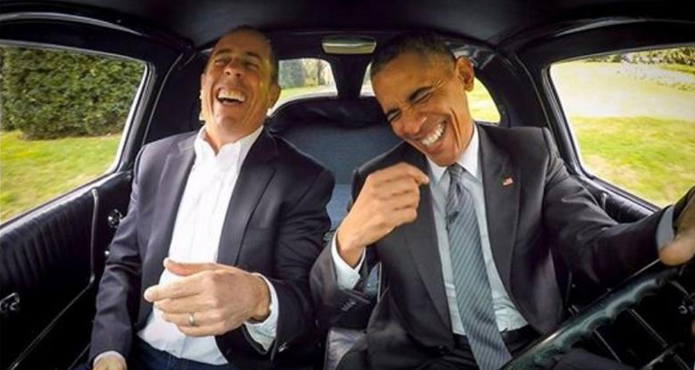 【大公报讯】据NPR、Vox报道:美国总统奥巴马在谐星宋飞(Jerry Seinfeld)网路电视剧“谐星乘车买咖啡”中现身,一同喝咖啡闲聊,不只爆料自己只穿一个牌子且同颜色的内衣,还直言“相当大比例”的世界领袖可能都疯了。