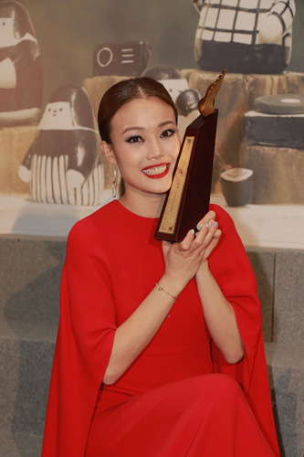 【大公报讯】记者温颖芝报道:容祖儿前晚在叱?颁奖礼夺两个半奖,并第十年夺得女歌手金奖。祖儿出席庆功宴时表示为“守住盘生意”咬紧牙关,所以见到吴业坤(坤哥)得奖时很激动,也回想起自己第一次得奖的情况。祖儿笑言为自己得奖高兴,因为她都“一把年纪”。对于失落“我最喜爱的女歌手”奖,祖儿表示自己其实只拿过一次。问她明年目标是否夺两个女歌手奖?她指不会强求,因为得到的已超额了。提到陈奕迅(Eason)未有到场,否则也可能输给坤哥,祖儿相信Eason不会在意。谈及她没什么笑容,她解释因为有点头痛,加上神经拉得很紧,很紧张。问她是否因为肩负整间公司才出席颁奖礼?她坦言没想这个,但内心有两把声音,有时希望付出了努力会有回报,而观众、同事又会很开心,有时又想像Eason那样去打边炉而不出席。记者笑她踢爆了Eason,她笑说:“有吗?”有传Eason的新屋值数亿元,祖儿指自己的屋尚要供,加上工作可保持状态,所以会继续做。