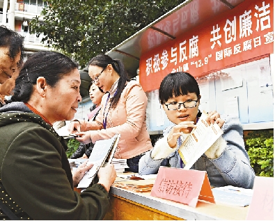 图:去年12月,福建福州仓山镇先锋村纪检部门进行反腐宣传/资料图片