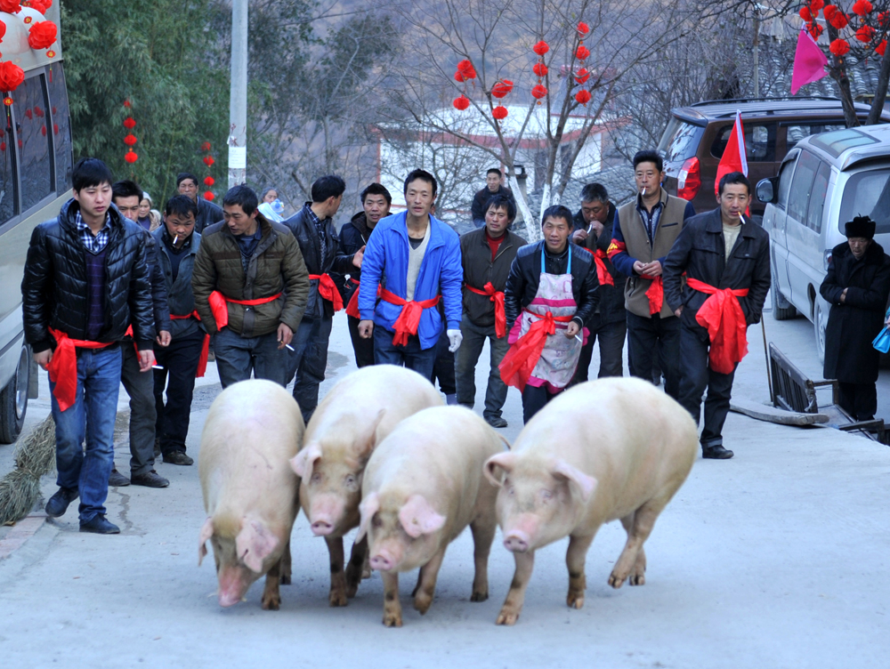 1月2日,位于牛背山下四川泸定县兴隆镇和平村举行“年猪王”比赛过新年,用自己的方式来庆贺丰收,并祈求新一年有好收成。 中新社