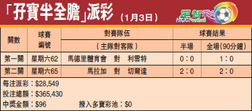 “孖宝半全胆”派彩
