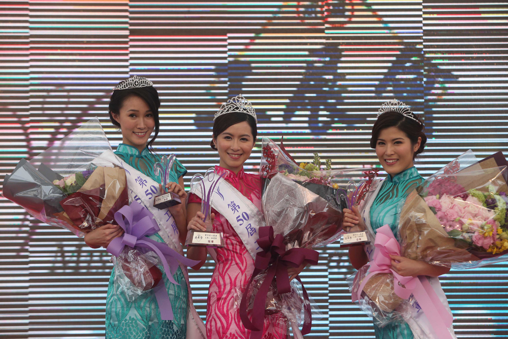 图:黎雪莹(中)夺得工展小姐冠军,张翠茵(右)及冯凯懿(左),则分别夺得亚军与季军