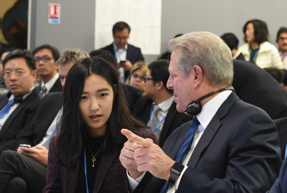 图:Ada在巴黎气候大会上与戈尔交谈\照片由受访者提供