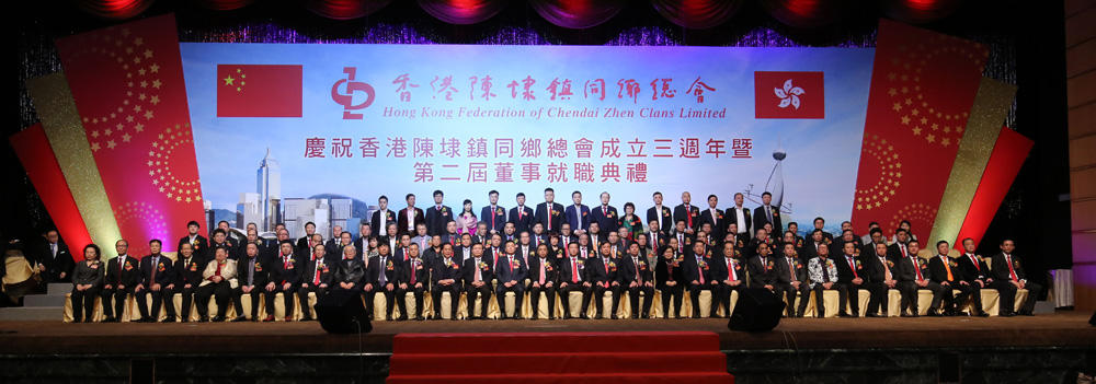 图:香港陈埭镇同乡总会成立三周年暨第二届董事就职典礼,宾主合照