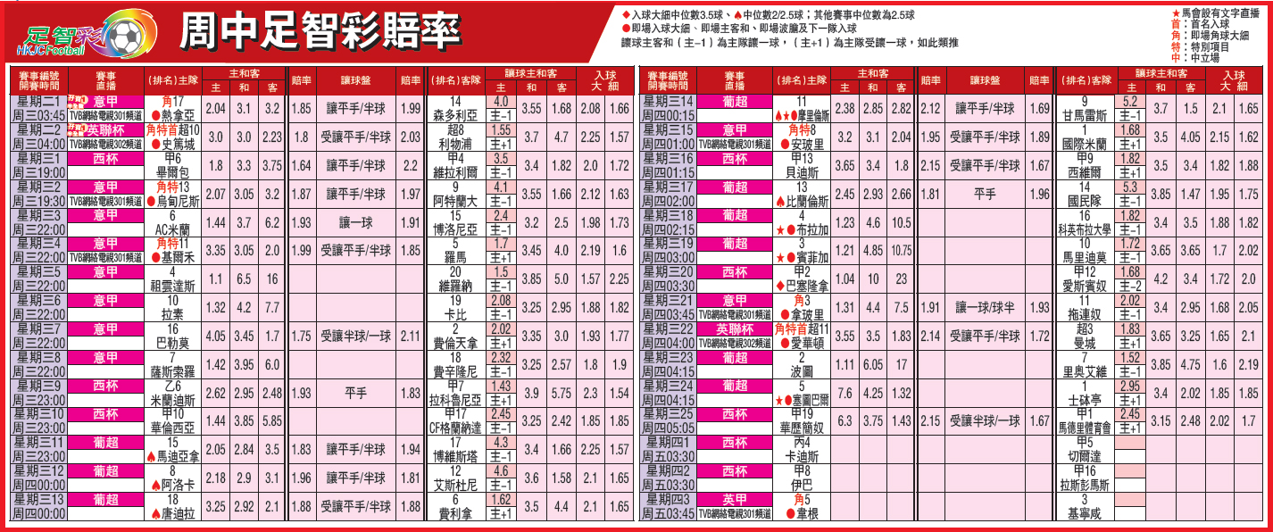 周中足智彩赔率