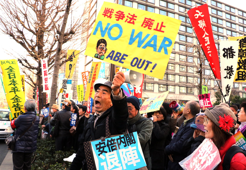 图:3800名示威者4日在东京国会大楼前抗议安倍修宪\法新社