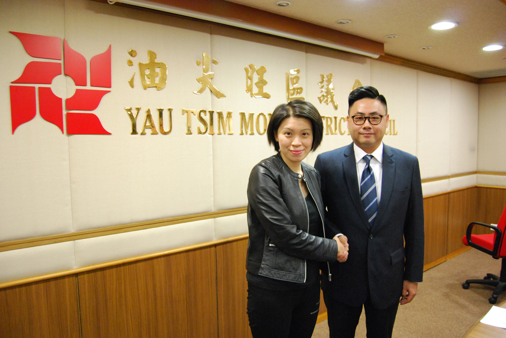 图:油尖旺区议会的新任正、副主席分别由民建联副主席叶傲冬(右)和西九新动力副主席黄舒明担任\大公报记者许嘉信摄