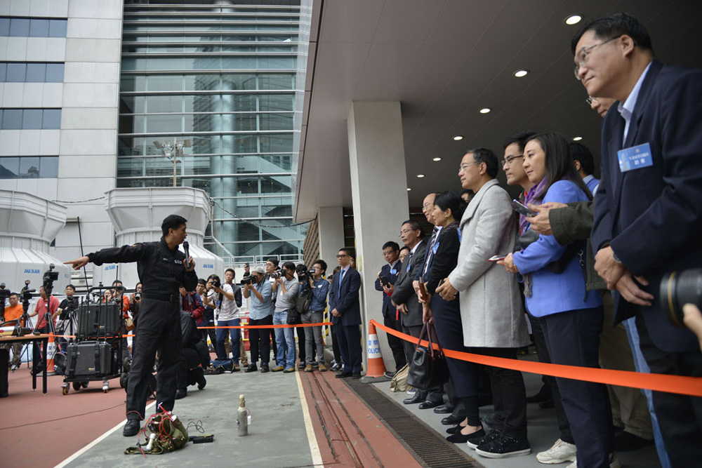 图:立法会议员观看爆炸品处理课人员示范处理爆炸品