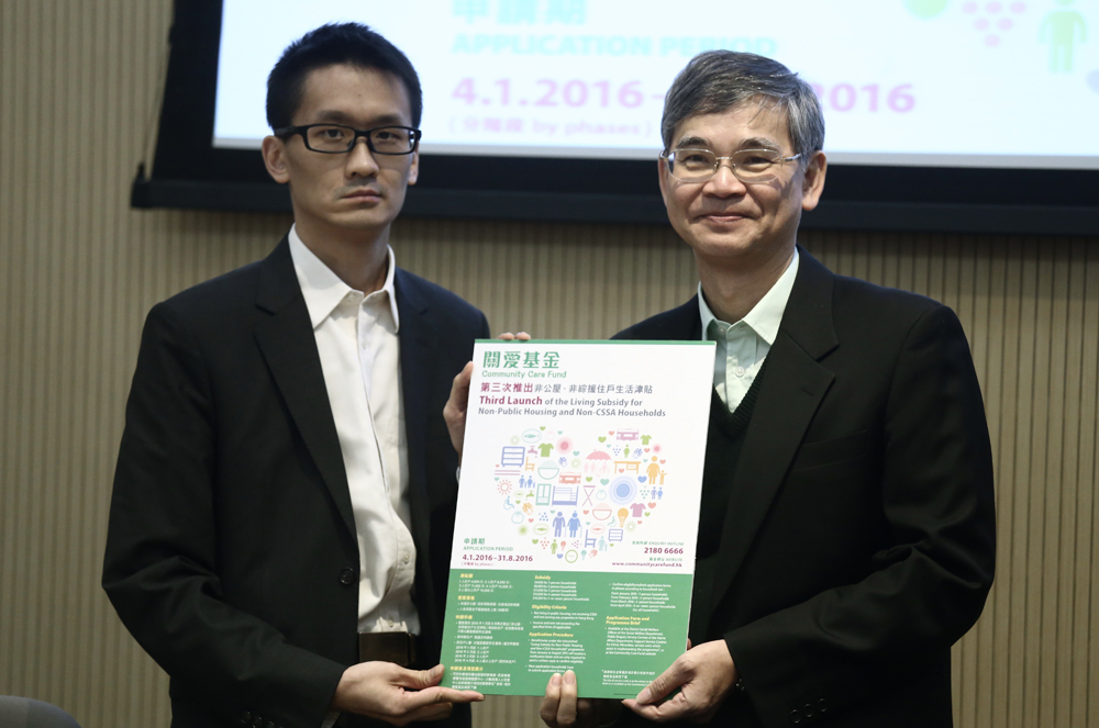 图:罗致光(右)重申,并无打算将“N无人士”生活津贴恆常化,左为民政事务局首席助理秘书长欧阳力”大公报记者何嘉骏摄