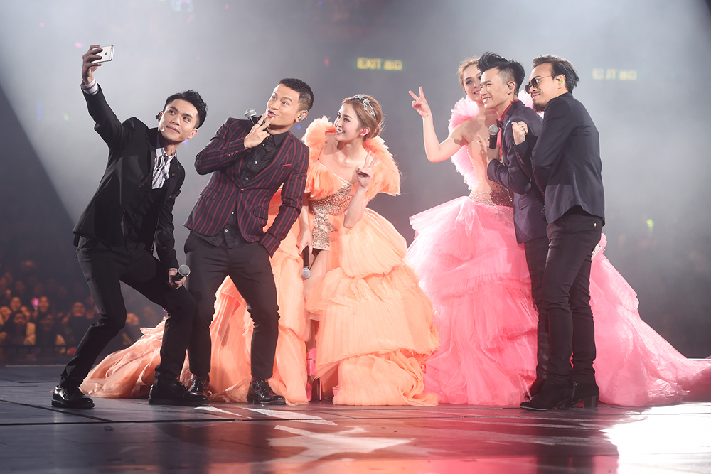 图:Twins(左三、四)跟C AllStar在台上自拍