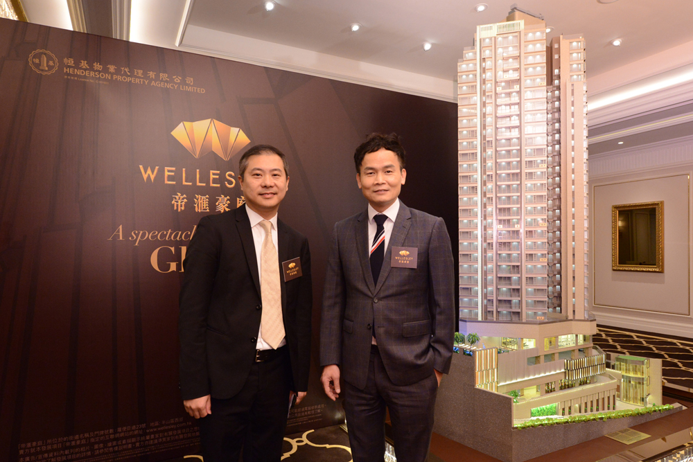 图:林达民(右)指集团今月有机会连环三响炮,帝?豪庭将打头阵。旁为帝?豪庭的建筑师杨志鸿