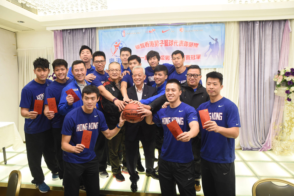 【大公报讯】记者李恆基报道:香港篮球总会昨晚为问鼎首届粤港杯篮球赛的香港男子篮球队举行庆功宴,篮总副会长兼香港男篮领队莫耀强即席派发总数5万港元的奖金予职球员,主席陈瑞添更勉励将士在周六的港澳埠际赛再下一城,将奖杯带回香港。
