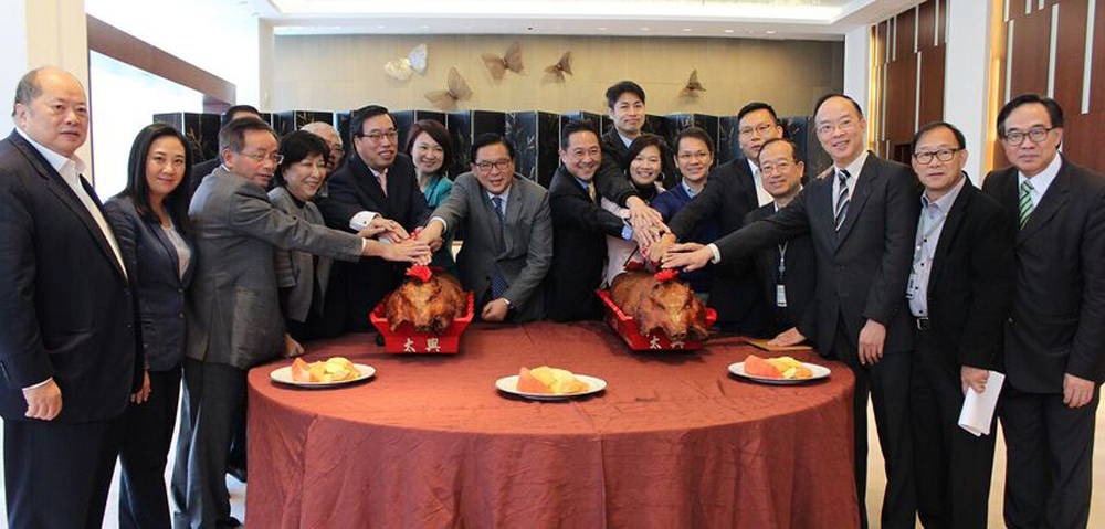 立法会昨日举行2016年首次会议,经民联主席梁君彦准备了两隻烧猪,联同其他议员,以及立法会秘书处同事齐齐切烧猪。梁君彦表示,一方面是庆幸上月立法会大楼加建工程地盘檐篷倾斜事件中无人受伤,一方面希望踏入2016年,新一年有好开始。立法会秘书长陈维安都藉此机会祝立法会议员、秘书处新一年顺顺利利。