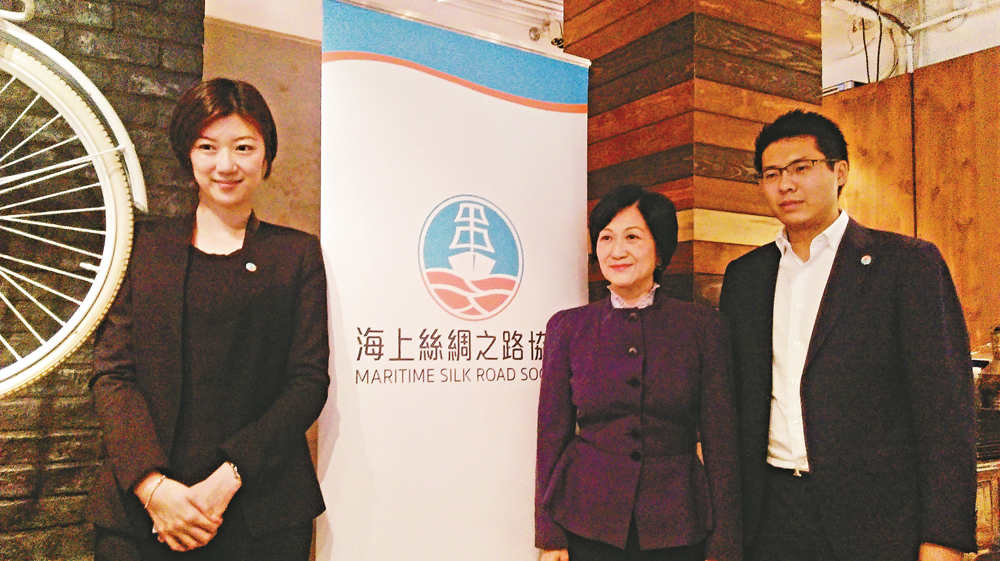 图:海上丝绸之路会联席主席叶刘淑仪(中)与旗下青机会副主席(行政)容海恩(左)及副主席(发展)王家扬介绍暑假实习项目